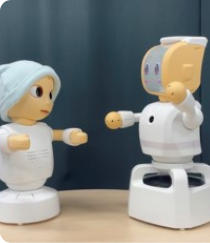 これを解決すると期待されるのが社会ロボット、つまり社会の一員として、人を超えるパフォーマンスで人の果たすべき役割の一部を担い、社会の構成・維持を支える人工エージェントです。ロボットが個体として人と話す機能の完成度は急激に高まっていますが、ロボットが個人に寄り添い、人と社会をつなぐ役割を果たすためには、より本質的な基本機能として、人のような社会性(社会的状況において人と関わる機能)を備えるロボットの研究が必要です。